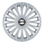 SETUL include 4 bucati capace roti, 4 cercuri metalice pentru o fixare mai ferma si 4 inele cromate care faciliteaza montajul siglelor in centru.