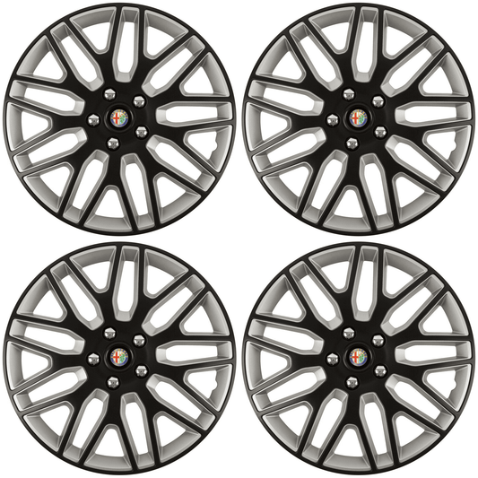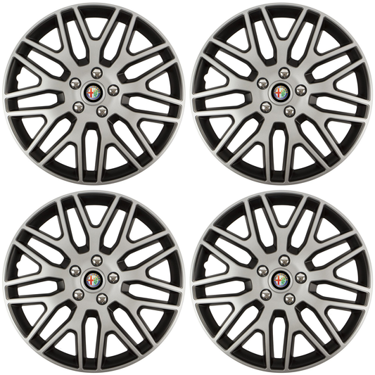 Set 4 Capace Roti Top Gri-Negru R15, Compatibil Cu Alfa Romeo