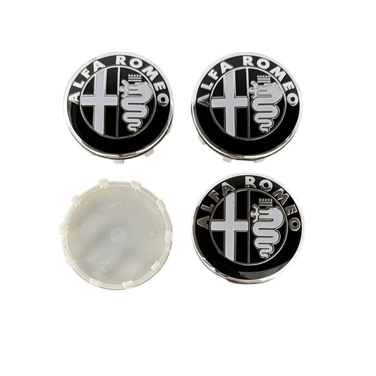 Set 4 Capace Jante Aliaj Alfa Romeo 60mm, Alb Negru