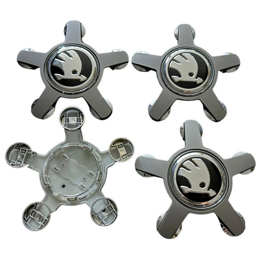 Set 4 Capace Janta Aliaj Skoda 56MM Interior - 65MM Exterior Negru Cu Argintiu