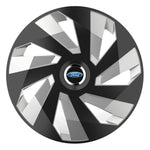 SETUL include 4 bucati capace roti, 4 cercuri metalice pentru o fixare mai ferma si 4 inele cromate care faciliteaza montajul siglelor in centru.