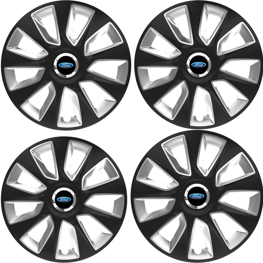 Set 4 Capace Roti, potrivite jantelor de R16, pentru Ford, model vector black and silver