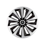 SETUL include 4 bucati capace roti, 4 cercuri metalice pentru o fixare mai ferma si 4 inele cromate care faciliteaza montajul siglelor in centru.