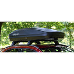Cutie portbagaj Farad Crub, volum 430 litri, prindere pe bare transversale, cu deschidere pe ambele parti, negru mat.