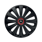 SETUL include 4 bucati capace roti, 4 cercuri metalice pentru o fixare mai ferma si 4 inele cromate care faciliteaza montajul siglelor in centru.