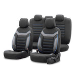 Setul contine 5 huse tetiera in ton cu modelul husei (combinatie din 2 materiale)