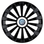 SETUL include 4 bucati capace roti, 4 cercuri metalice pentru o fixare mai ferma si 4 inele cromate care faciliteaza montajul siglelor in centru.
