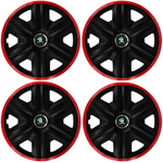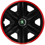 Set 4 Capace Roti pentru Skoda Nou Verde, model Fast Black Cu Rama Rosie, R16, SKODA