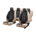 Duplán laminált textilanyagból készült huzatok, hasonlóak az eredeti kárpitozáshoz (OEM), öko bőr betétekkel és mindkét oldalon szivaccsal bélelve (5 mm vastag)