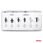 Set universal de 100 de piese diverse cleme auto pentru fixarea tapitereriei in masina, aripi, bare de protectie.