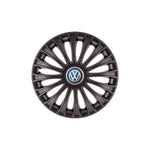 SETUL include 4 bucati capace roti, 4 cercuri metalice pentru o fixare mai ferma si 4 inele cromate care faciliteaza montajul siglelor in centru.