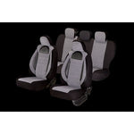 Huse din material textil dublu laminat similar cu tapiteriile originale, cu insertii de piele ecologica si ambele fete dublate cu burete (grosime 5mm)
