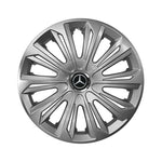 SETUL include 4 bucati capace roti, 4 cercuri metalice pentru o fixare mai ferma si 4 inele cromate care faciliteaza montajul siglelor in centru.