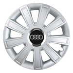 SETUL include 4 bucati capace roti, 4 cercuri metalice pentru o fixare mai ferma si 4 inele cromate care faciliteaza montajul siglelor in centru.